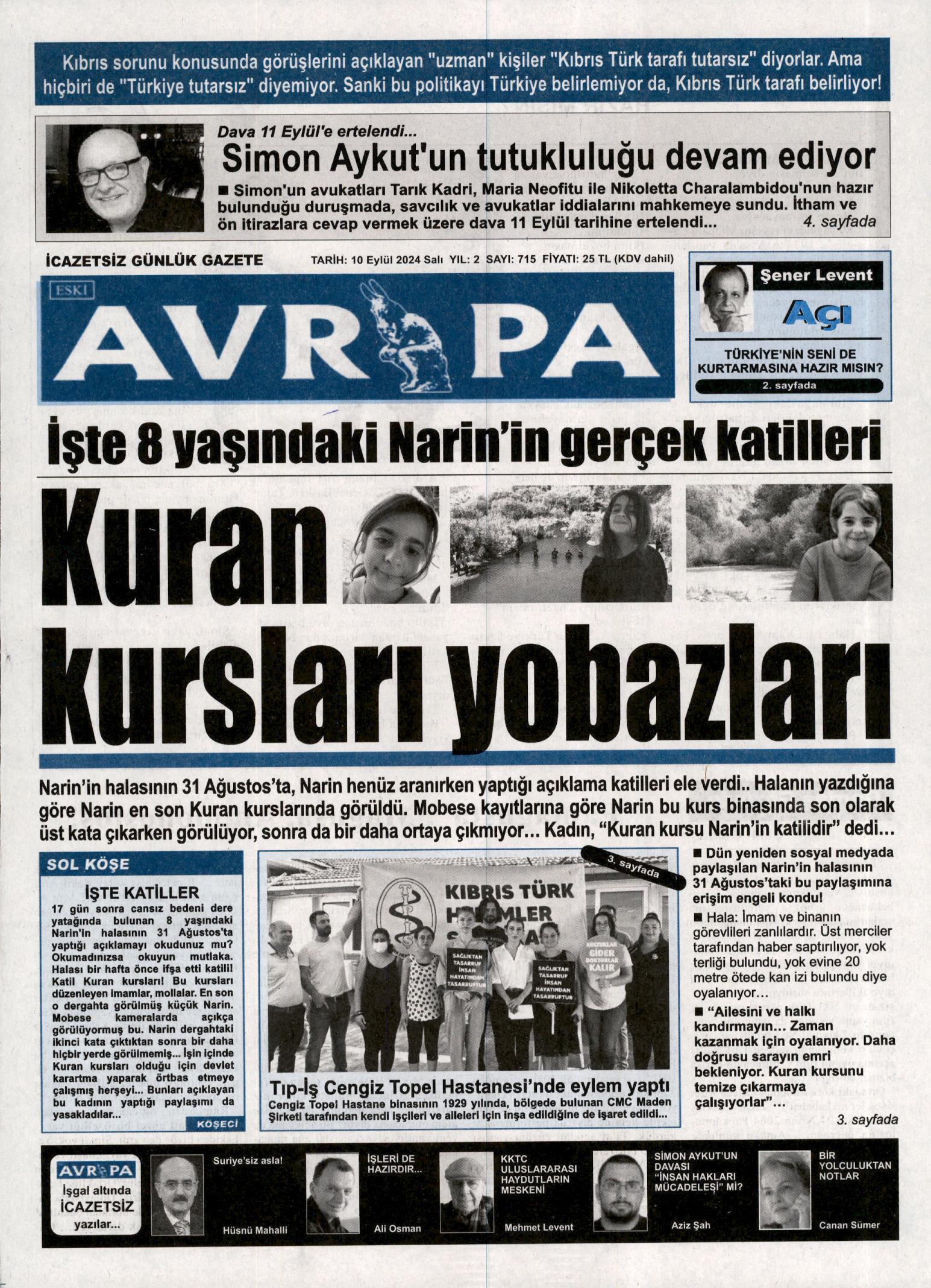 10 Eylül 2024 Salı Gazete Manşetleri