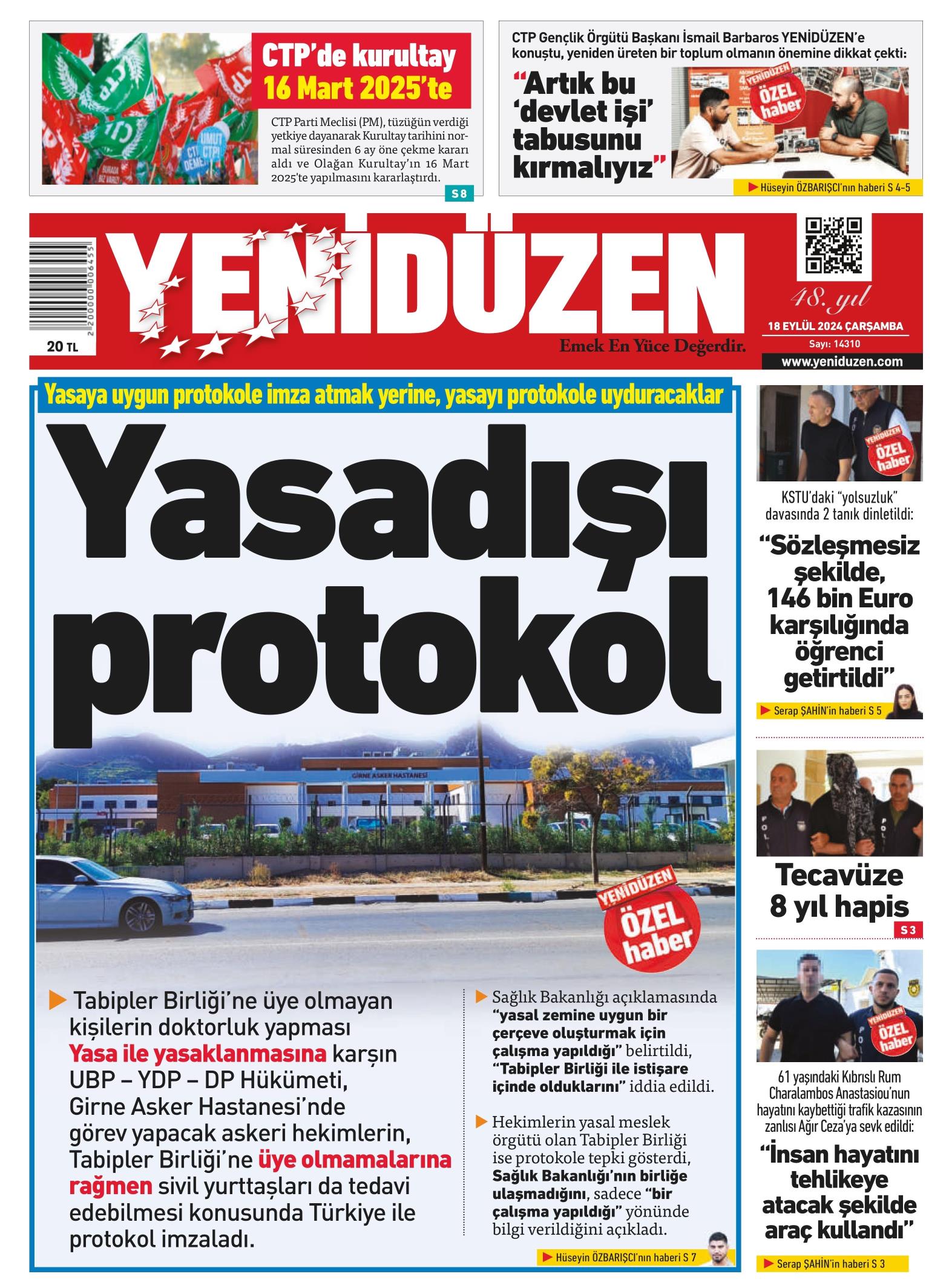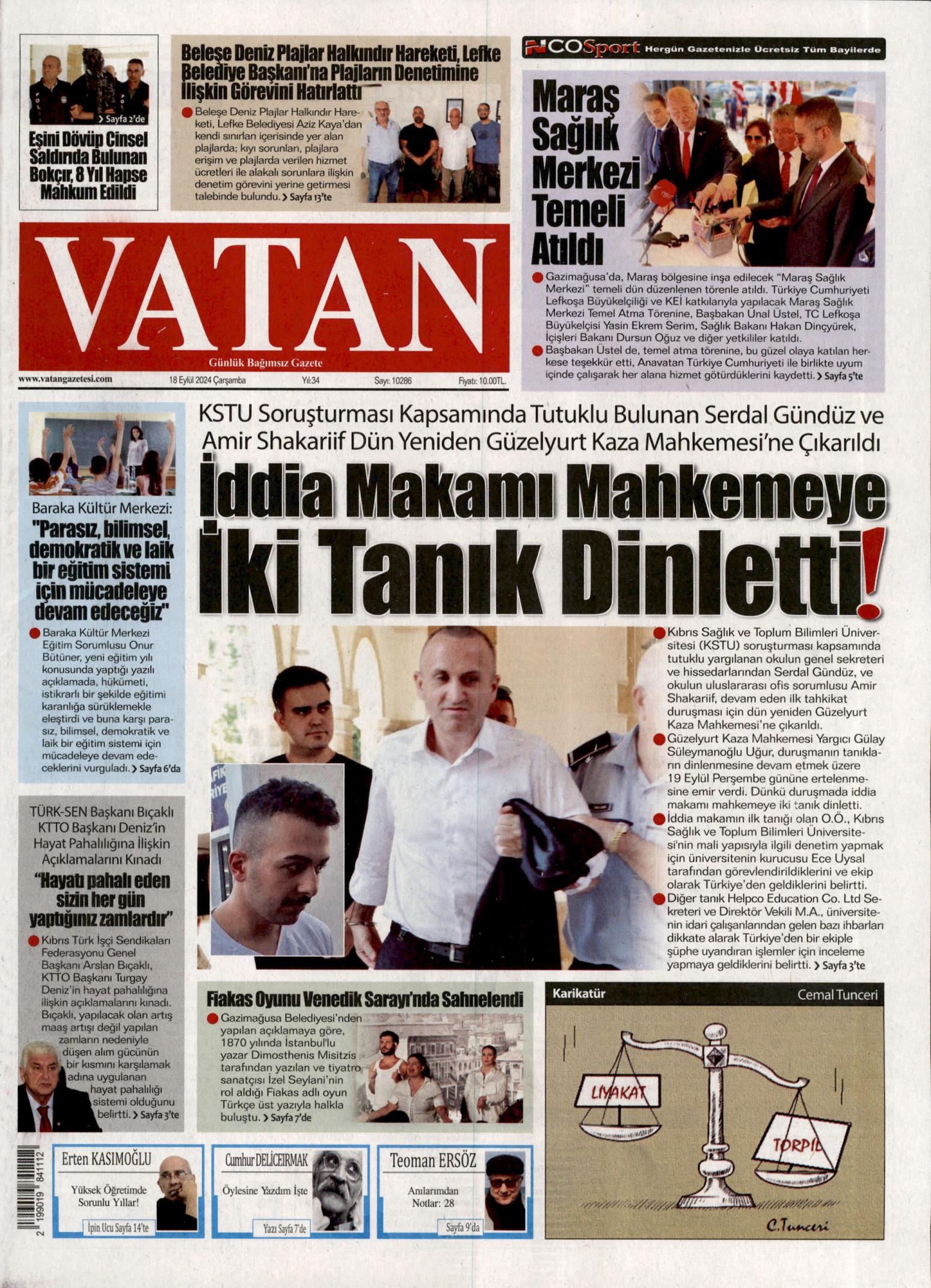 18 Eylül 2024 Çarşamba Gazete Manşetleri