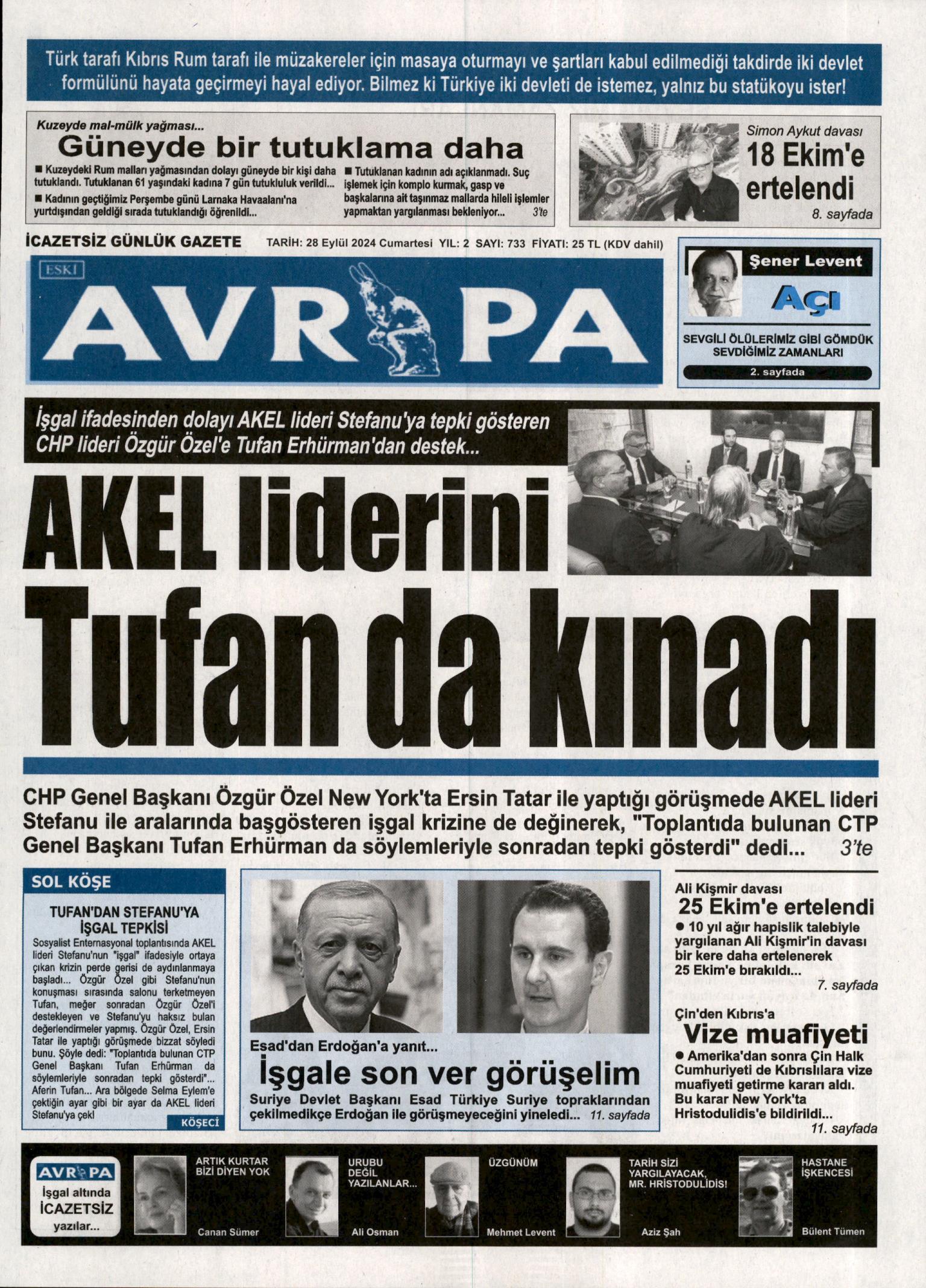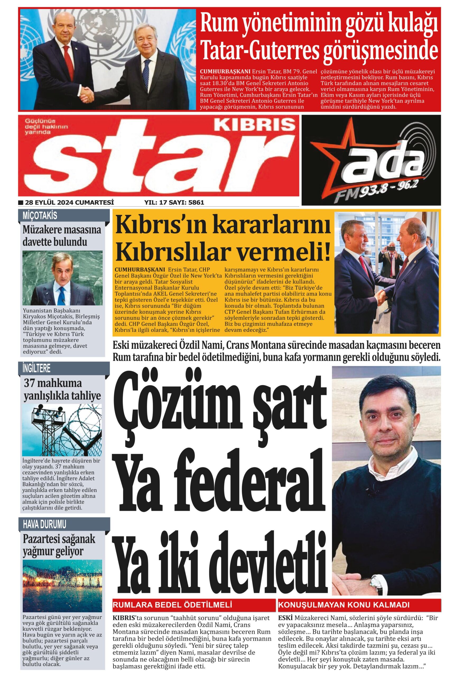 28 Eylül 2024 Cumartesi gazete manşetleri
