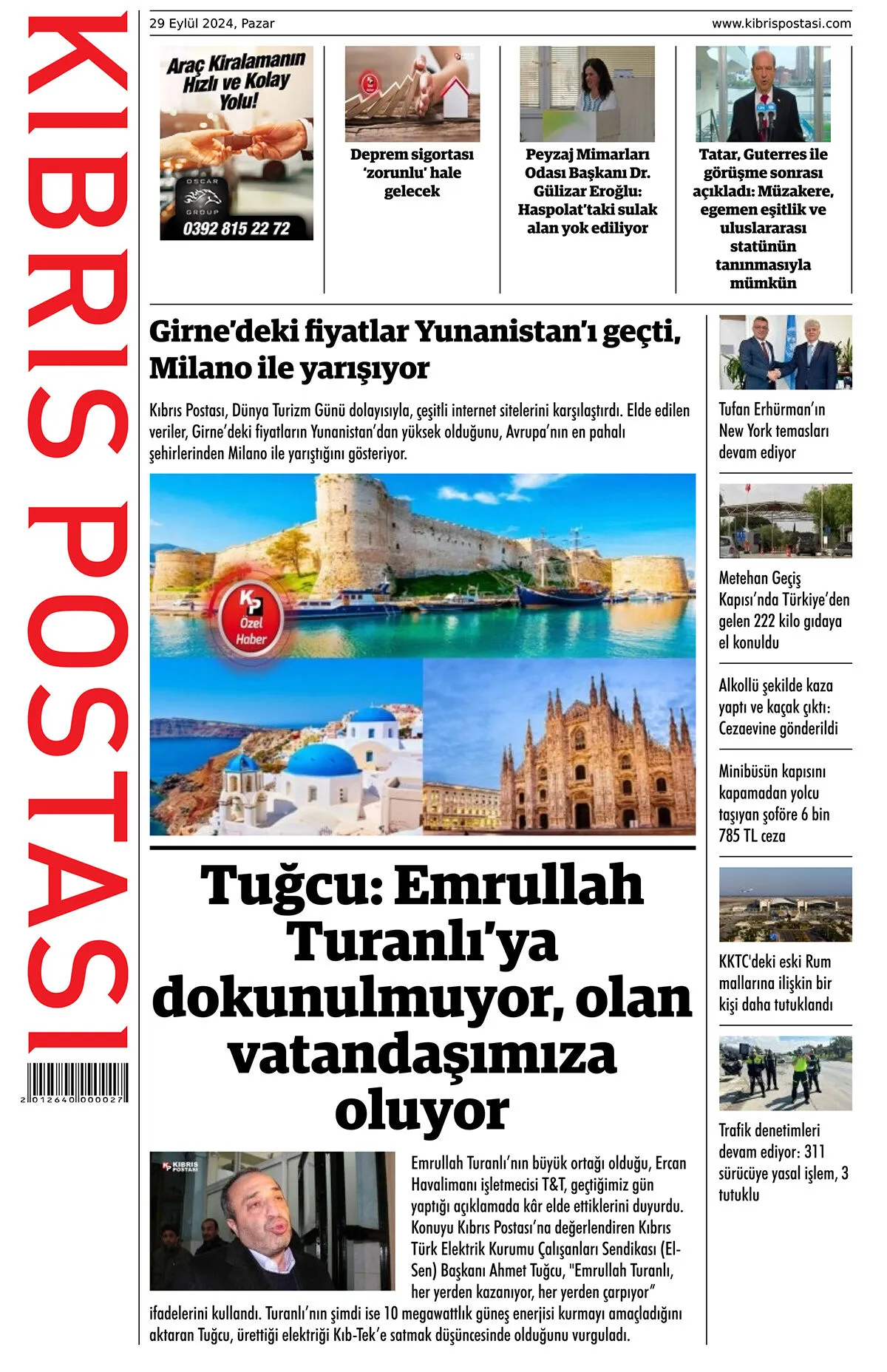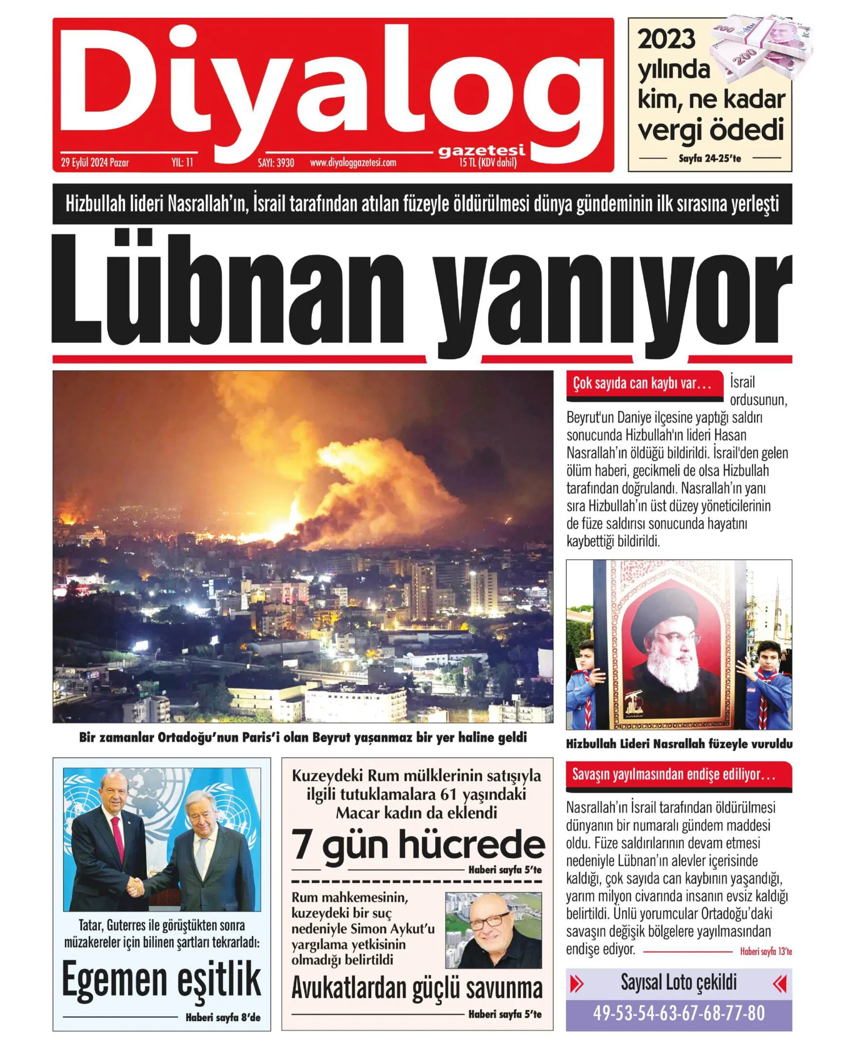 29 Eylül 2024 Pazar Gazete Manşetleri