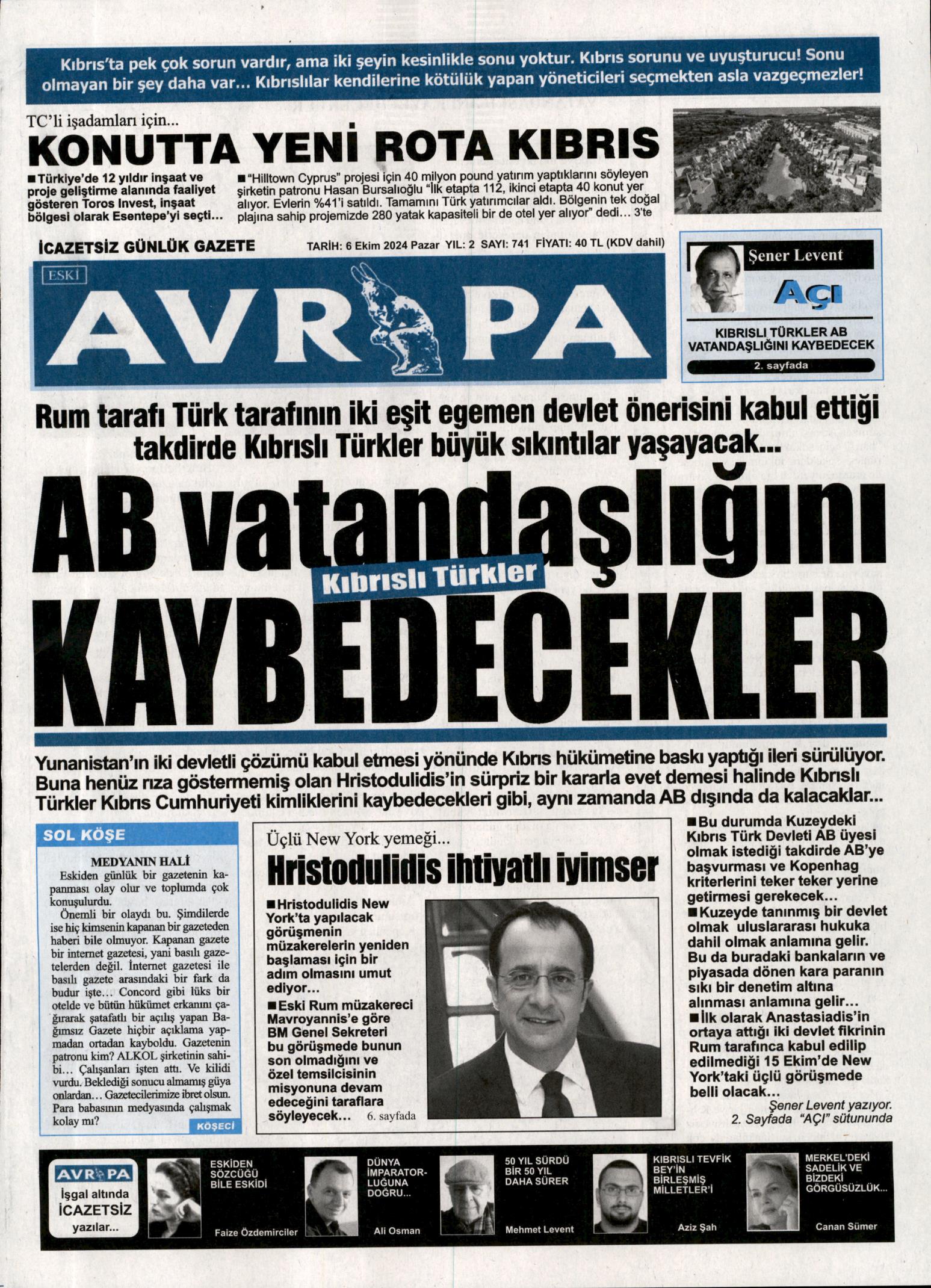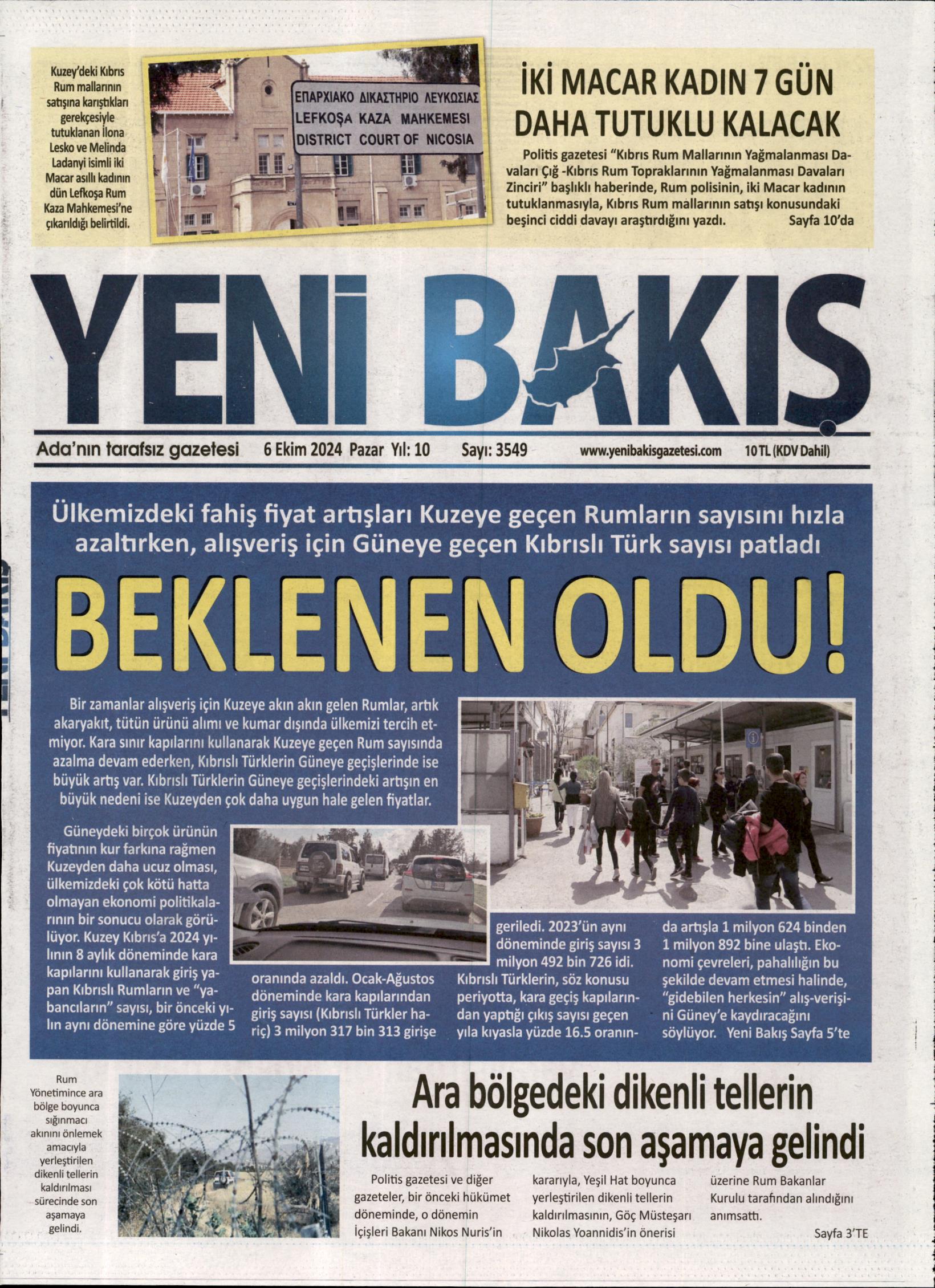 6 Ekim 2024 Pazar Gazete Manşetleri