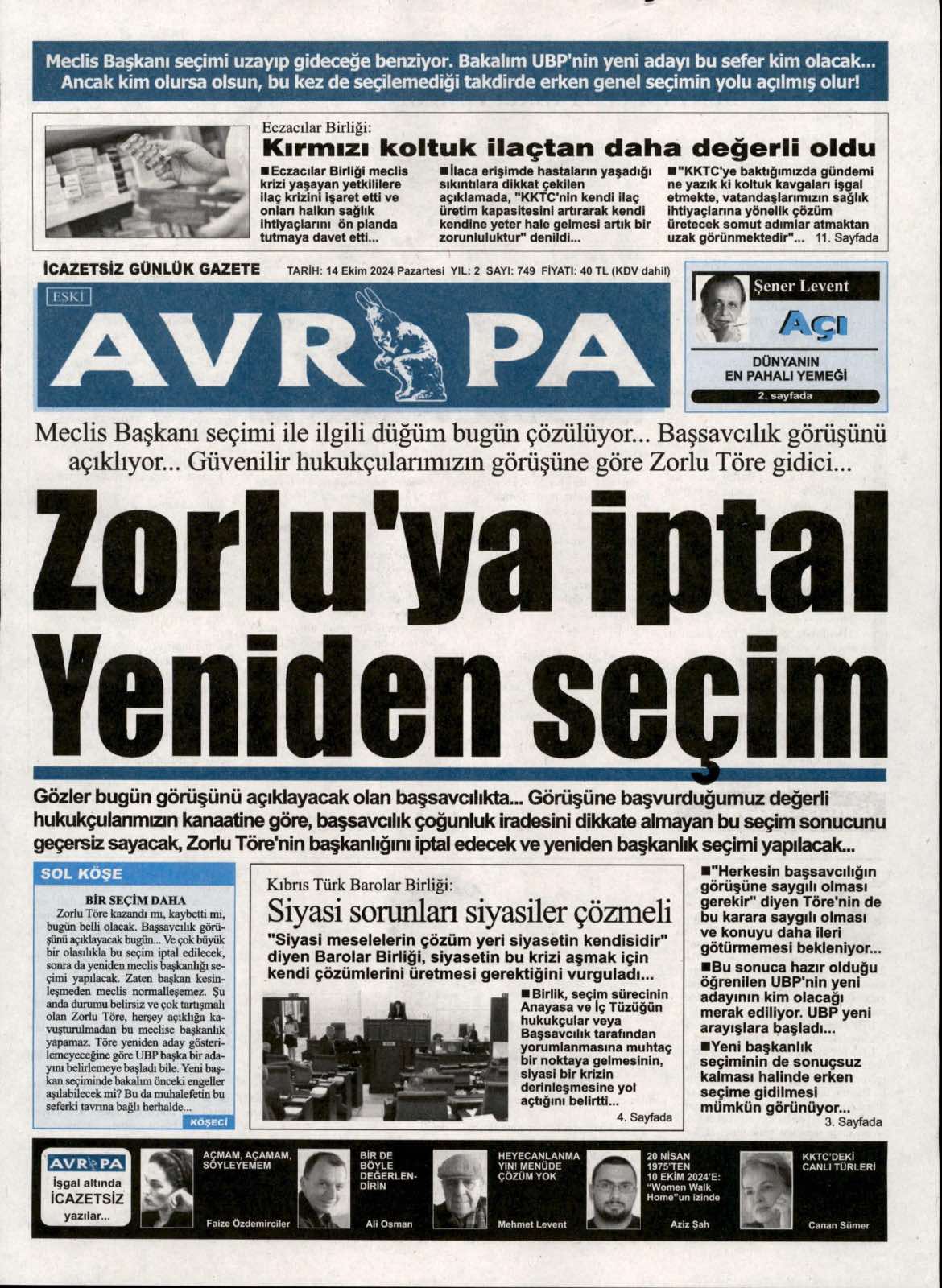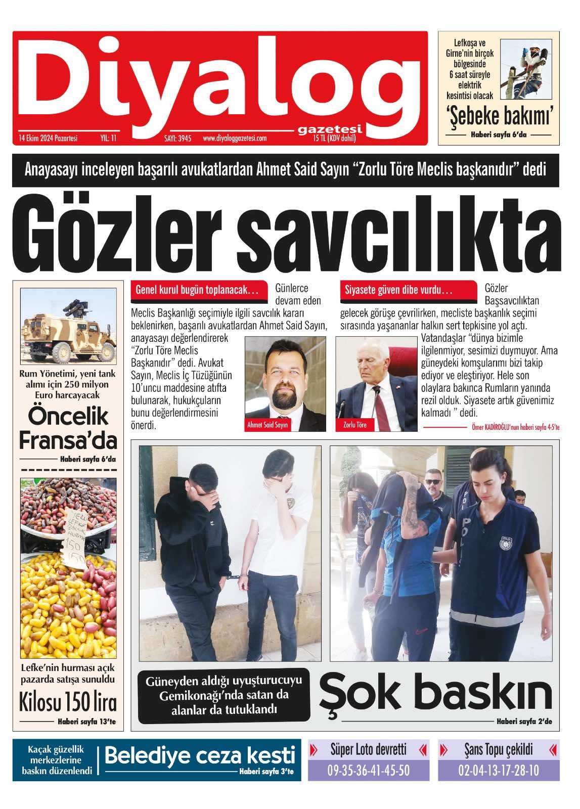 14 Ekim 2024 Pazartesi Gazete Manşetleri
