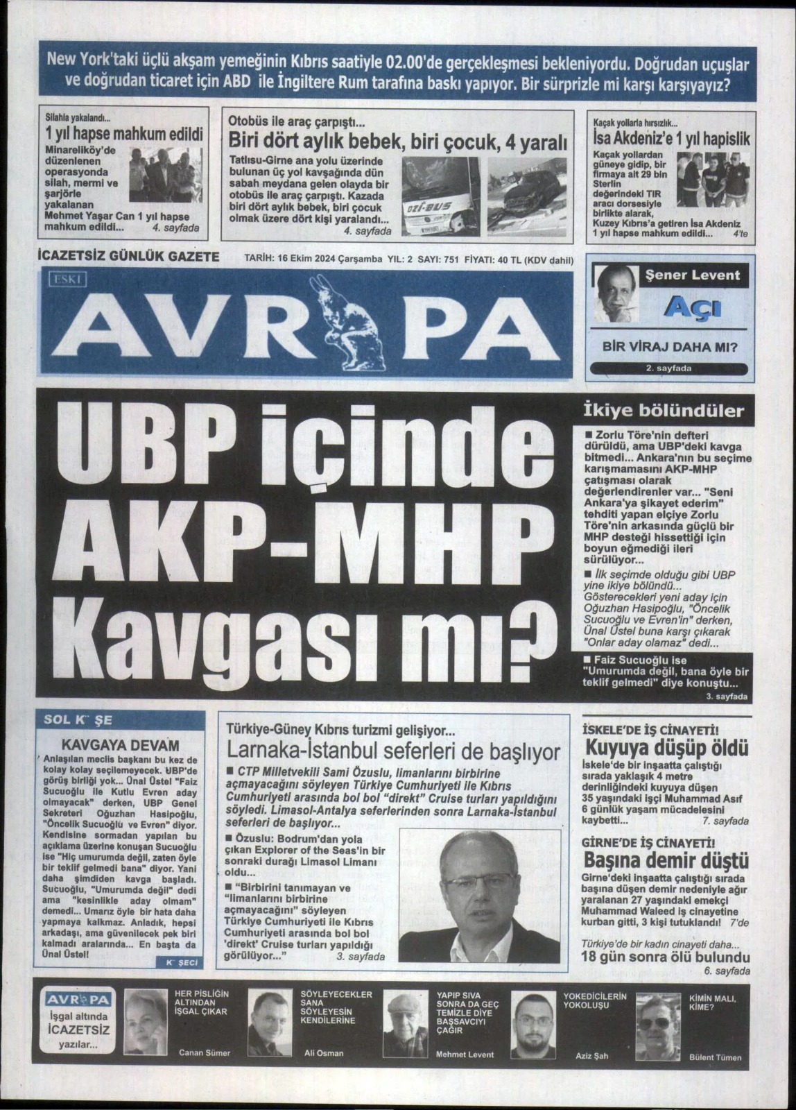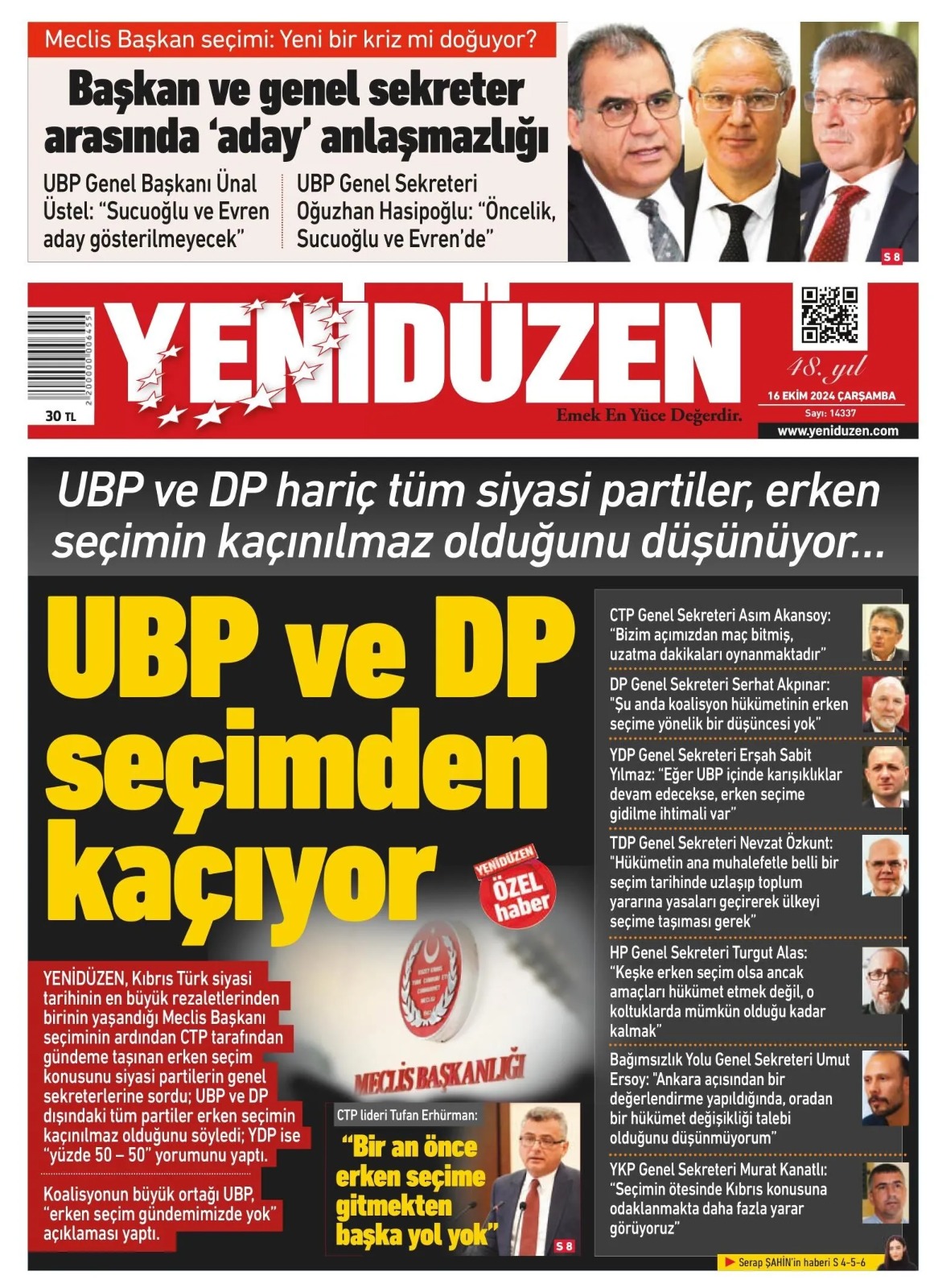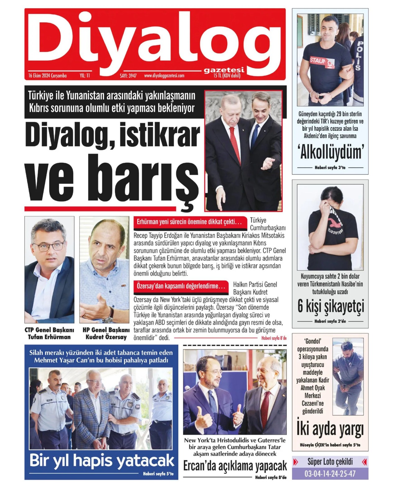 16 Ekim 2024 Çarşamba Gazete Manşetleri