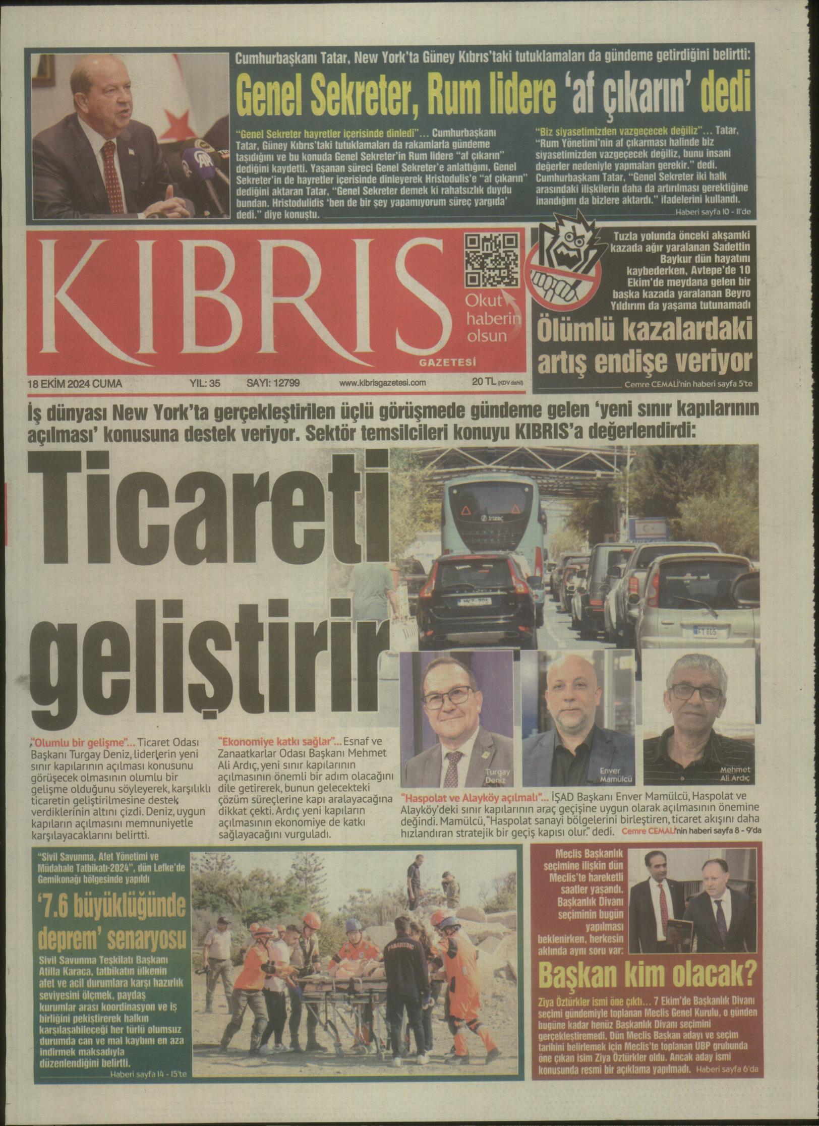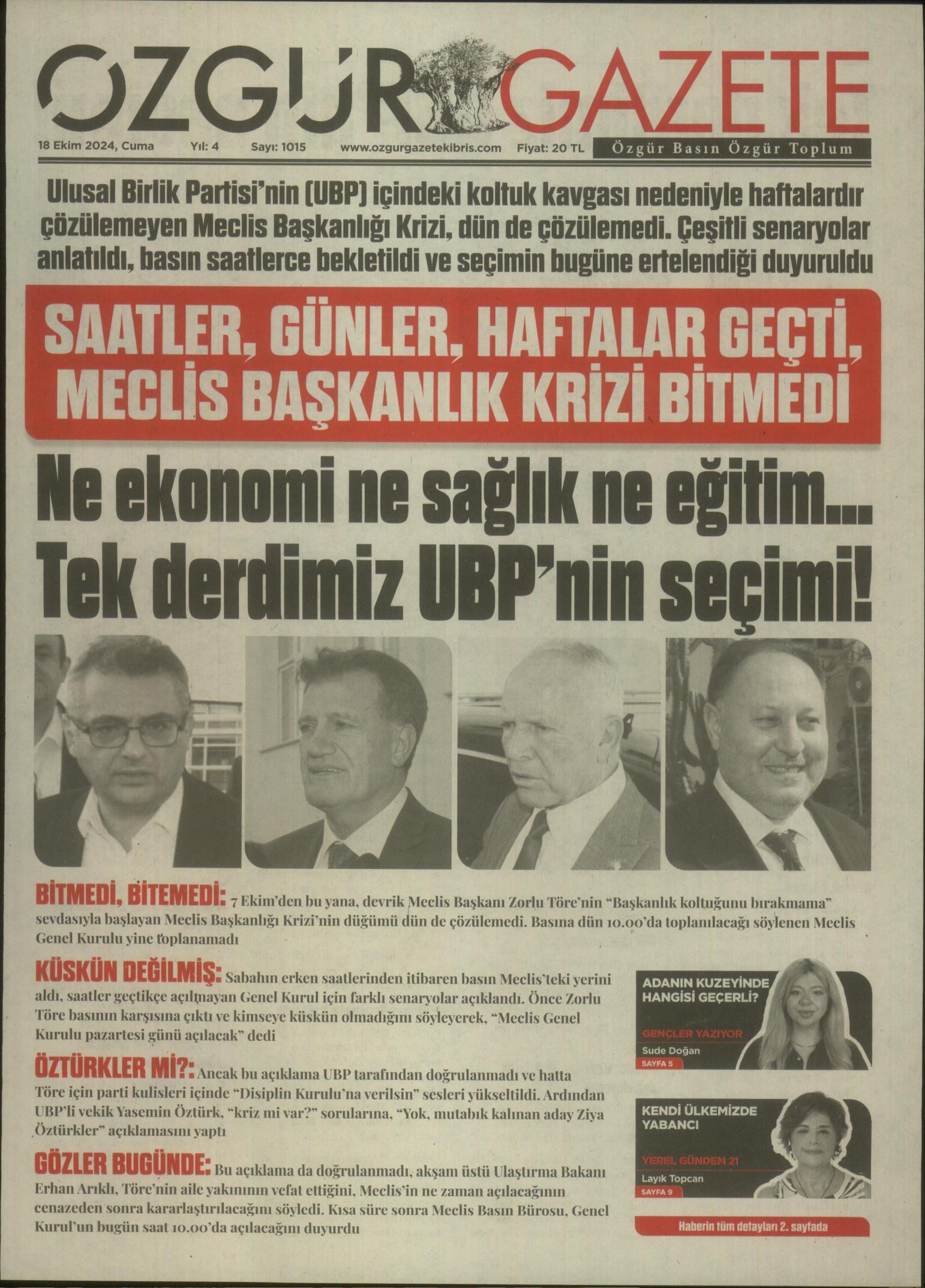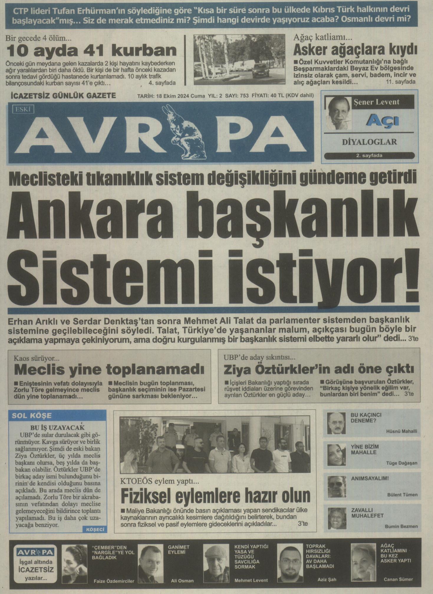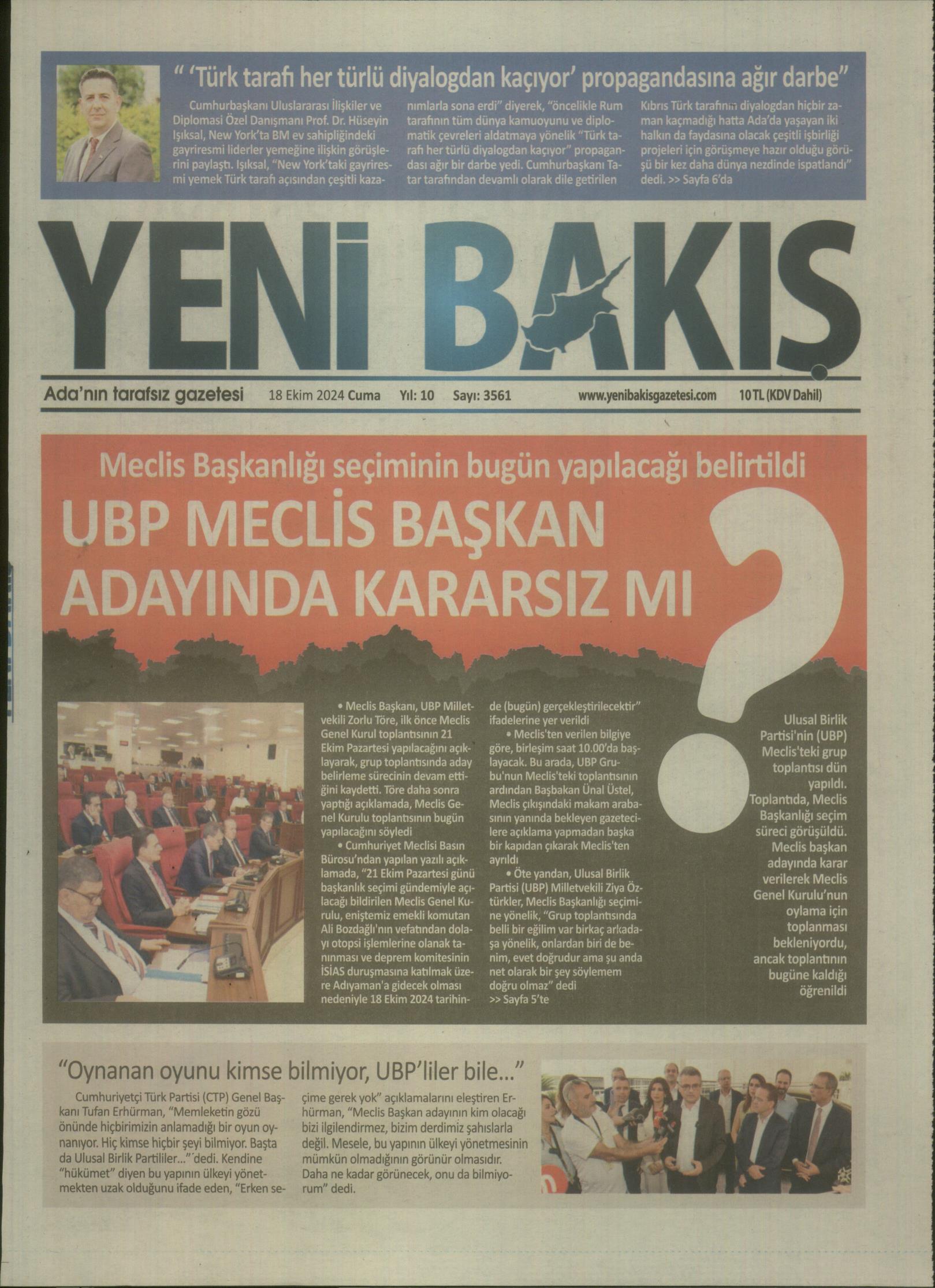 18 Ekim 2024 Cuma Gazete Manşetleri