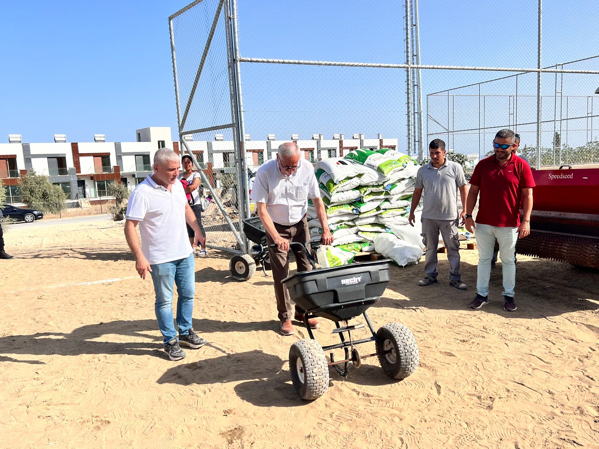 Kulüp Başkanı Piskobulu ile Girne Belediye Başkanı Güngördü, toprak alana ilk çim ekimini yaptı.