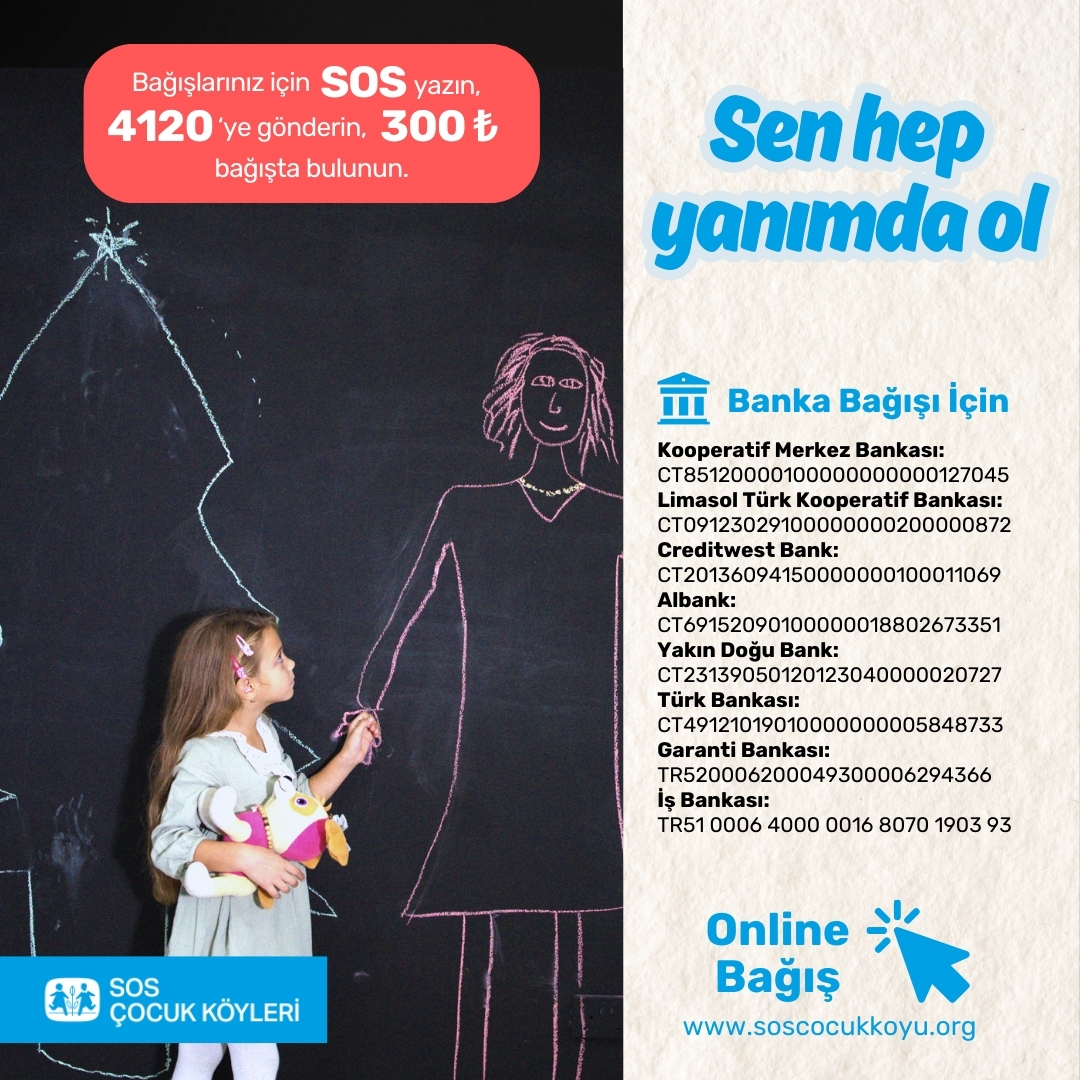 SOS Çocukköyü Derneği, yeni yılda çocukların hayatlarına umut olmak için “Sen Hep Yanımda Ol” bağış kampanyası başlattığını açıkladı.