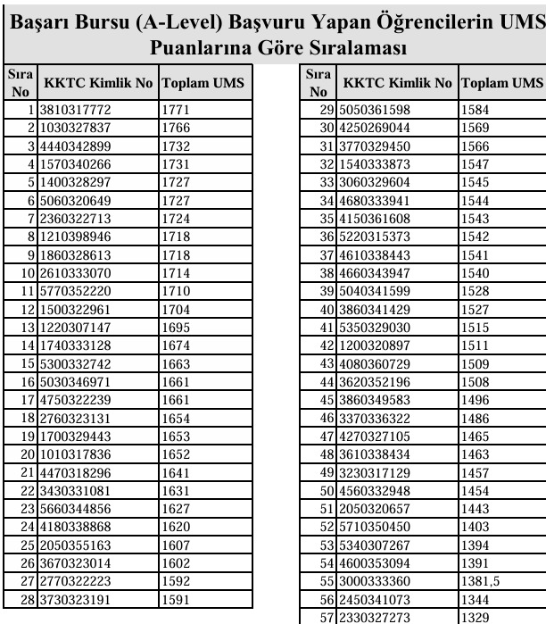 Açıklamada, “2024-2025 akademik yılı için Başarı Bursu (A-Level) almaya hak kazanacak olan öğrencilerimizi kutlar, yükseköğretime devam eden tüm öğrencilerimize eğitim hayatlarında başarılar dileriz.” denildi.