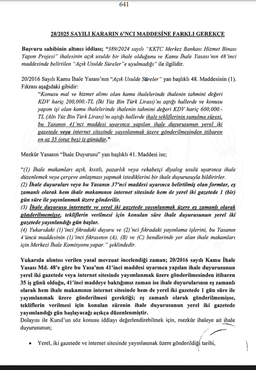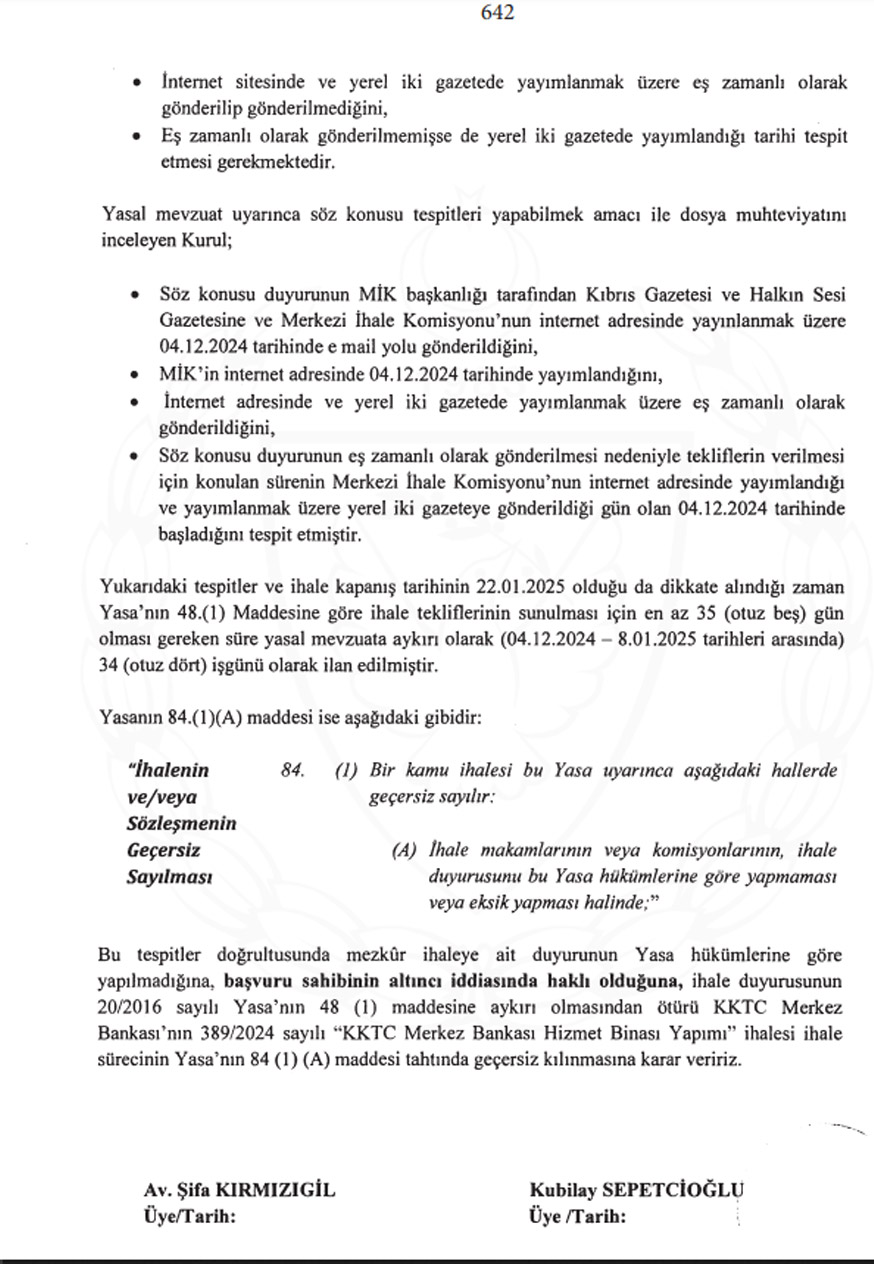 Gerçek İnşaat ve Müteahhitlik Şti. Ltd’nin itirazı sonucu Merkez Bankası Hizmet Binası Yapımı ihalesi, iptal edildi.