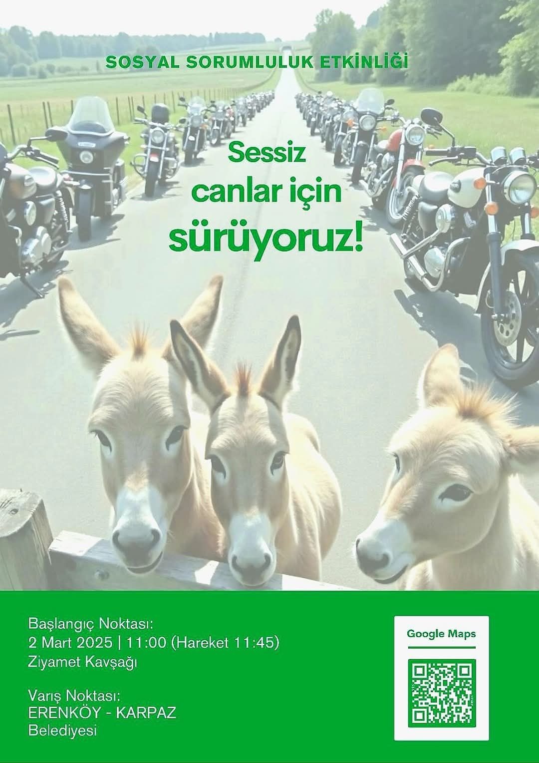 Malum herkesin bilmiş olduğu Dipkarpaz’daki sahipsiz kendi doğasında yaşayan eşeklerin katledilmesi hepimizi üzmüştür. Bu yüzden Cerberus Club Başkanı Hakkı Elvin, biz motorcuların da hayvan severler olduğunu göstermek adı altında bir etkinlik düzenlemiştir. Yoğun çalışmalar sonucu etkinlik planlanması şu şekildedir: