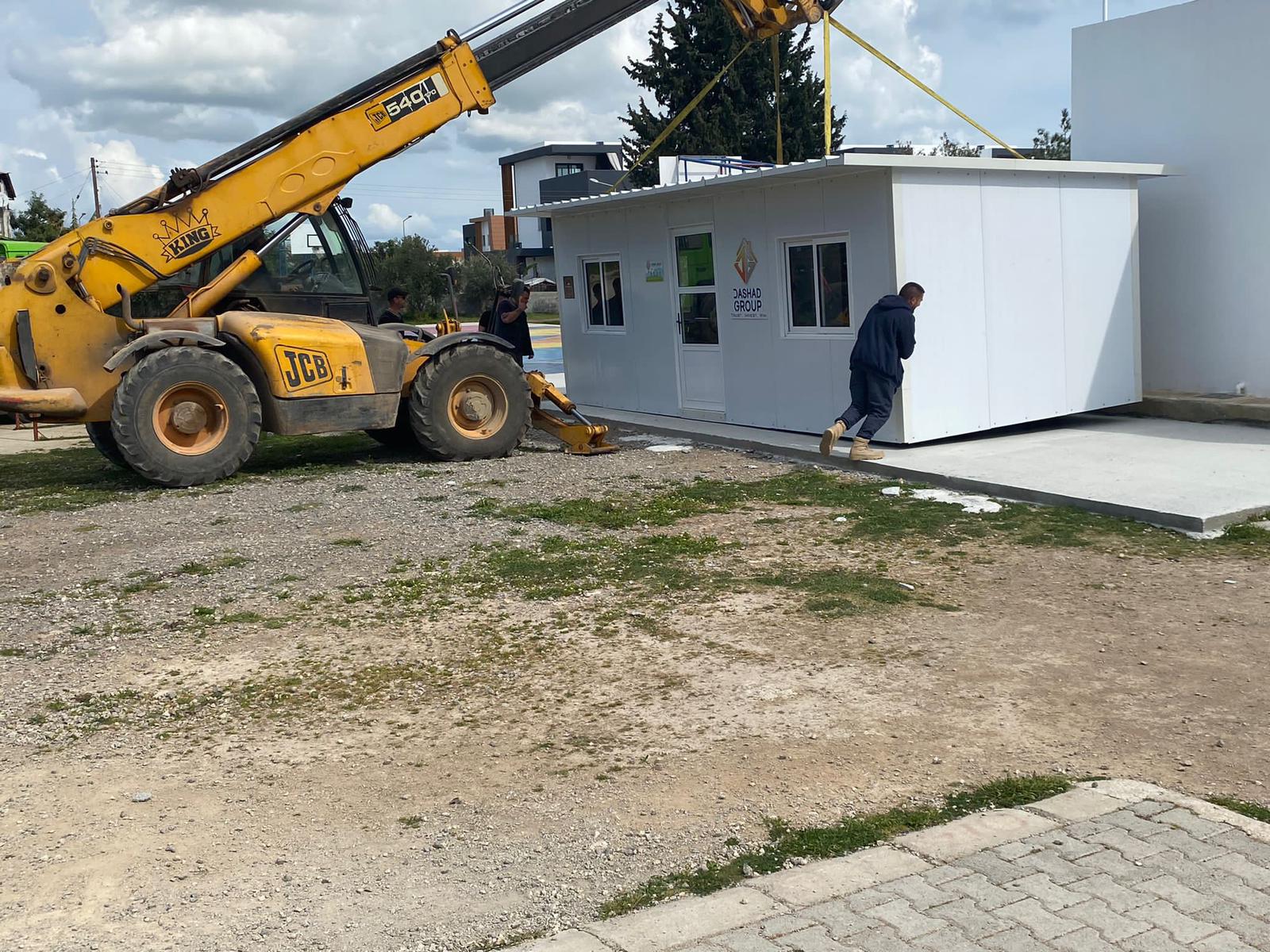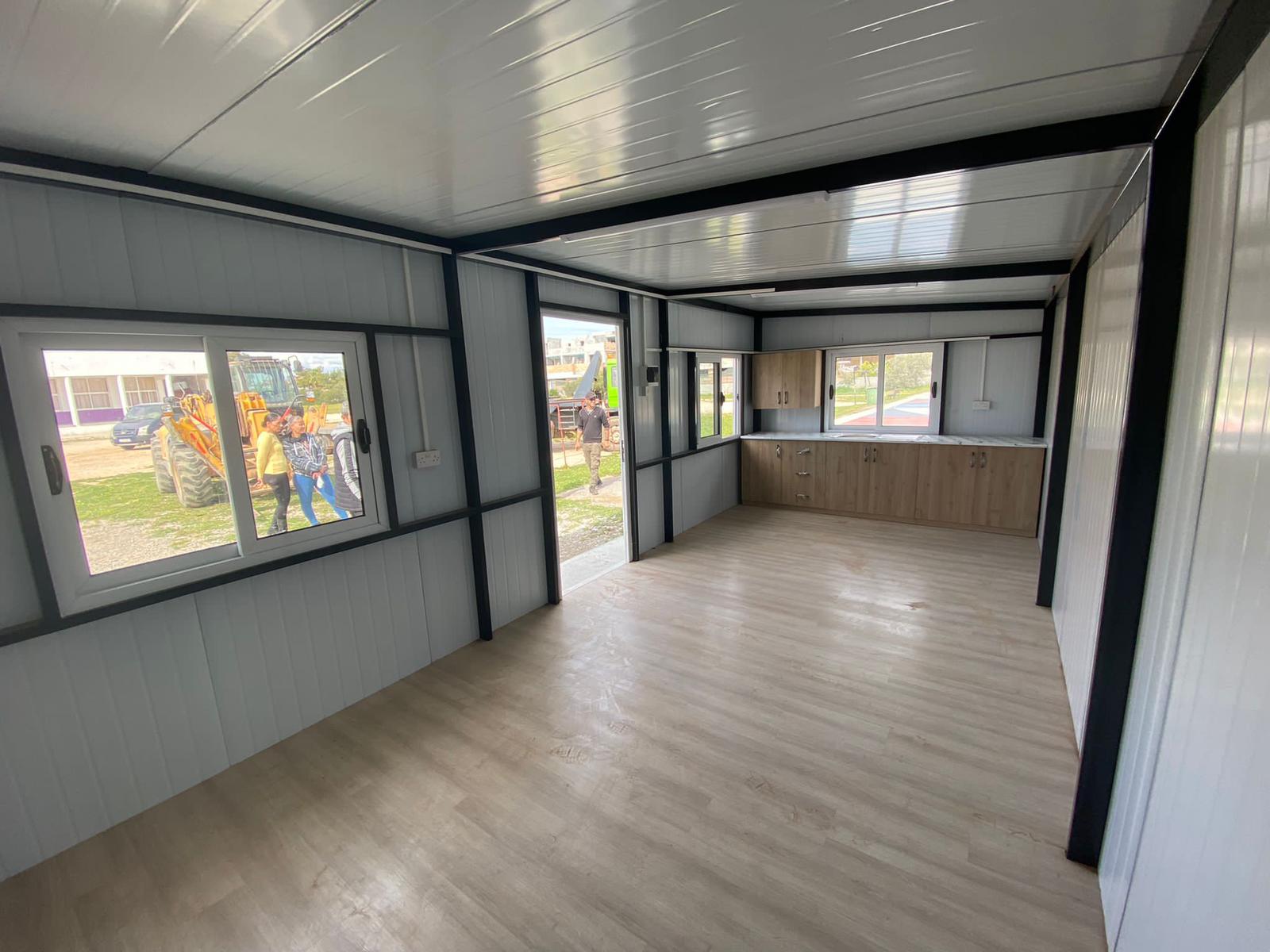 Tehlikeli yapının içerisinde bulunan öğretmenler odası da bölge şirketi DASHAD Grub’un katkılarıyla prefabrik olarak yapıldı ve kullanıma açıldı.