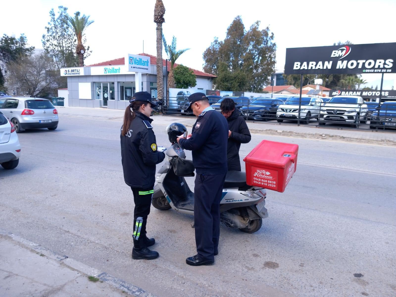 Lefkoşa’da polis tarafından bugün gerçekleştirilen trafik denetimleri kapsamında motosikletle paket dağıtımı yapan sürücüler de kontrol edildi.