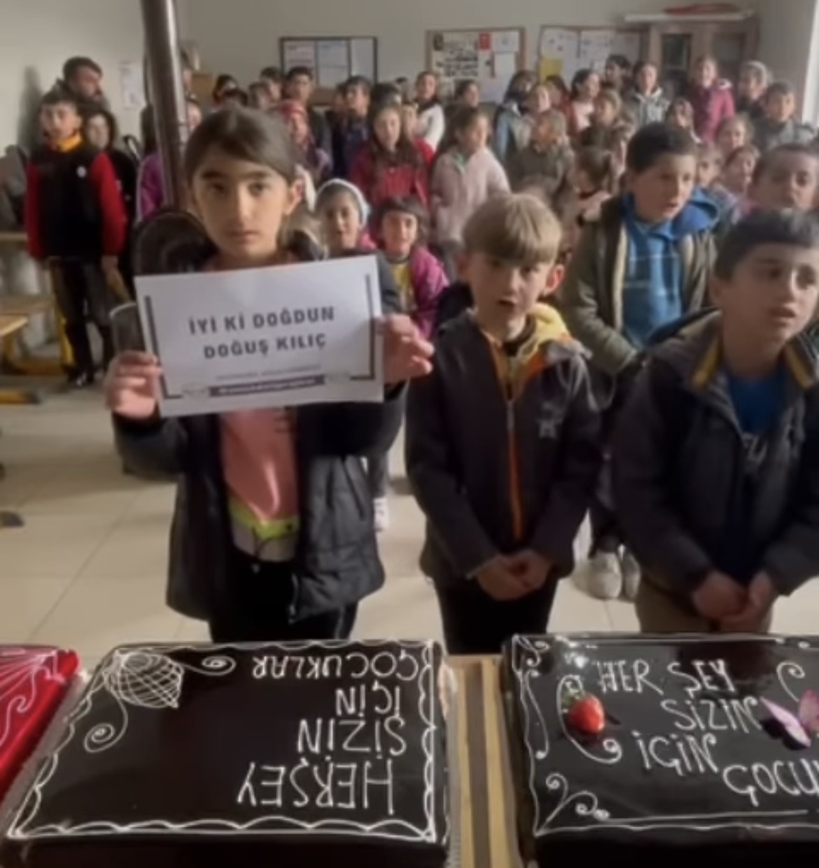 Umut Dalı Yardımlaşma Projesi ortaklığıyla gerçekleşen sürpriz de, deprem bölgesindeki çocuklar hem Doğuş Kılıç’ın doğum gününü kutladılar, hem de onun yerine mum üfleyip pasta kestiler.