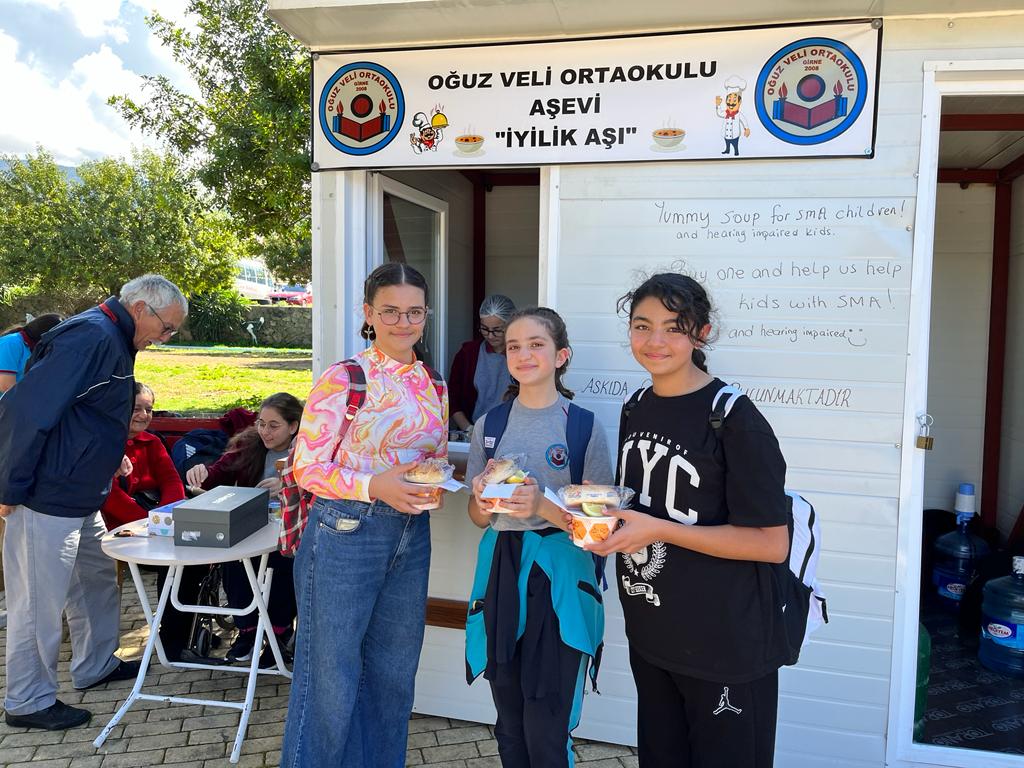 Vakıflar İdaresiyle Milli Eğitim Bakanlığının düzenlemiş olduğu “İyilikte Yarışalım” projesi kapsamında tüm okulların başlatmış olduğu iyilik yarışmasında sona doğru gelinirken tüm okullar büyük bir heyecanla projelerini sürdürüyor. Yarışmaya Oğuz Veli Ortaokulu “İyilik Aşı” projesi ile katılmış. Bu süre zarfında her Çarşamba Girne Barış Parkına yaptıkları aşevinde çorba satışı yapmışlardır. Geliri İşitme Engelliler Vakfı (KIKEV) ve SMA hastalarına bağışlanacak olan bu projeye katkı koymak adına bu hafta Girne Belediye Başkanı Murat Şenkul ziyarette bulunmuş ve iyilik aşından alarak projeye katkı sağlamıştır.