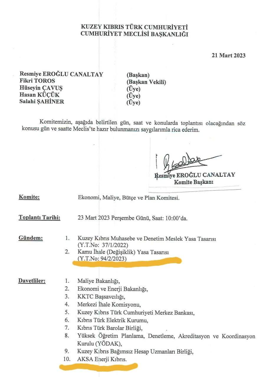 CTP’li vekil Şahiner, “Kamu İhale (Değişiklik) Yasası, AKSA denilen şirkete ‘özel’ olarak çıkartılan, ülkede elektrik faturası ödeyen herkesin cebinden alıp AKSA'nın kasasına koymak için uydurulan bir ihanet belgesidir” dedi.
