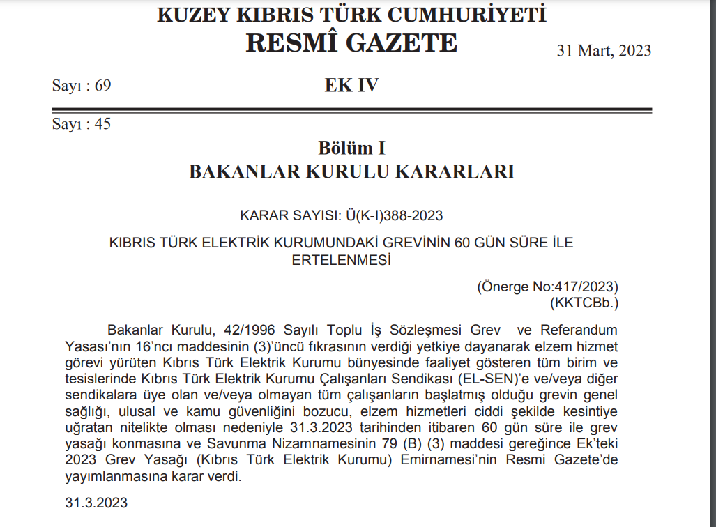 El-Sen’in süresiz grev ilan etmesinden çok kısa bir süre sonra, Bakanları Kurulu jet hızıyla toplanarak grevi 60 gün süreyle erteleme kararı aldı. Bu karar da Resmi Gazete’de yayımlandı.