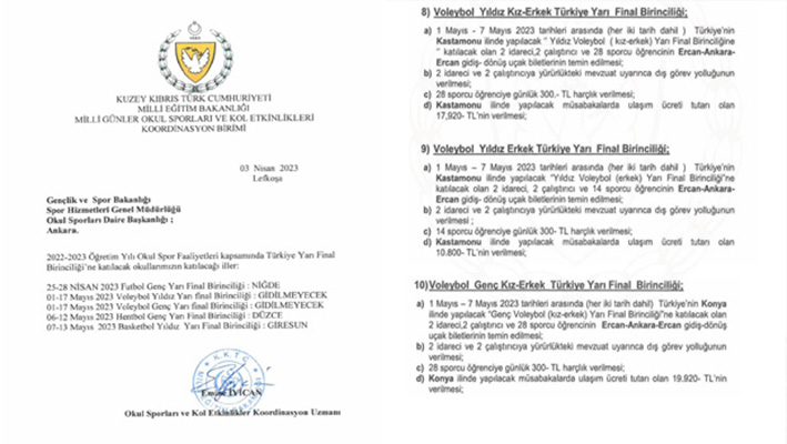 Resmi Gazetede yayınlanan karara göre 1-7 Mayıs 2023 tarihleri arasında Kastamonu’da gerçekleşecek Türkiye Yıldız Kız-Erkek Türkiye Yarı Final Birinciliğine ülkemizden gönderilecek okulların masrafları ile ilgili bilgiler aktarıldı.