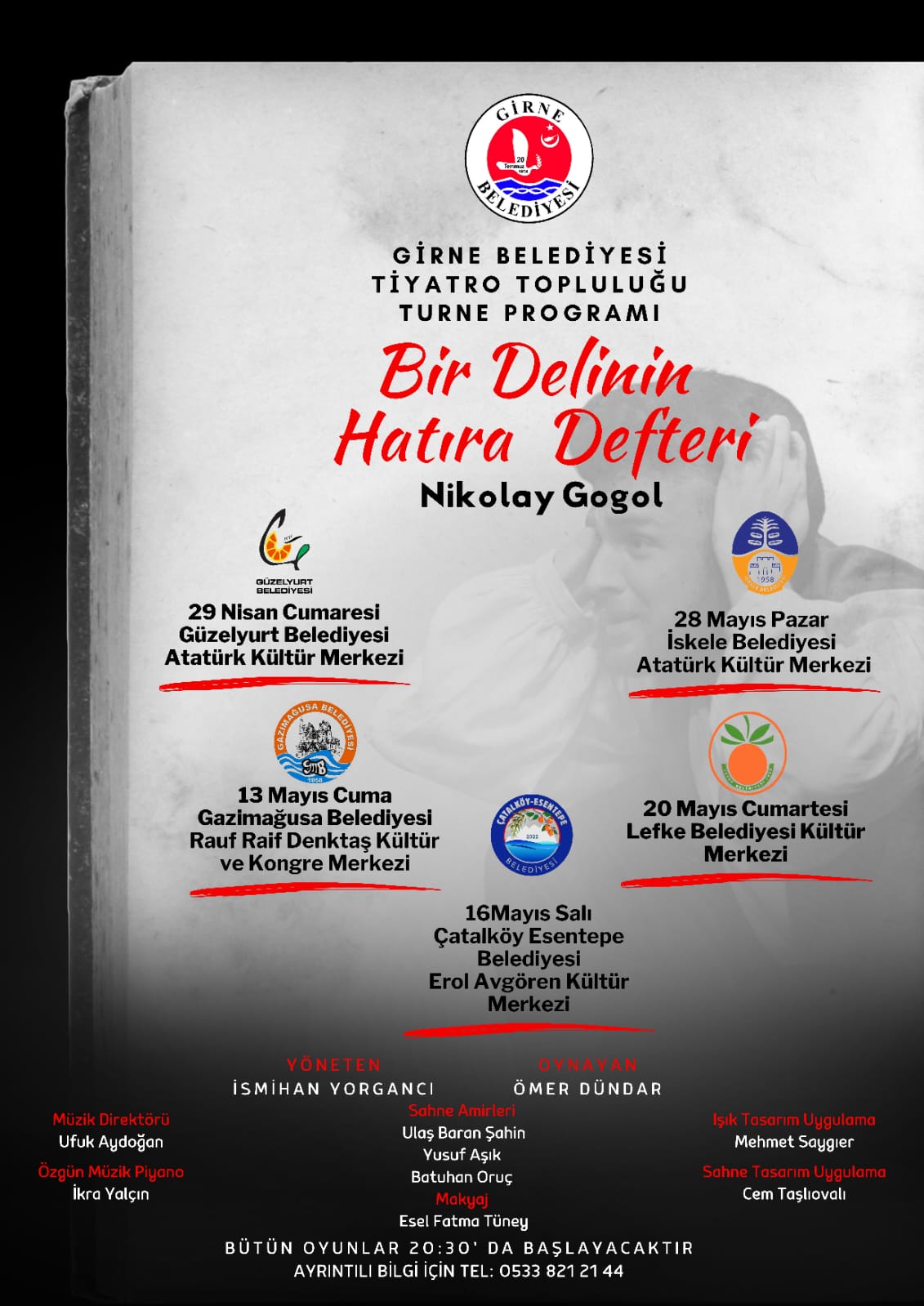 Girne Belediyesi Tiyatro Topluluğu, Nikolay Gogol’un yazdığı “Bir Delinin Hatıra Defteri” adlı oyun ile turneye çıkıyor.