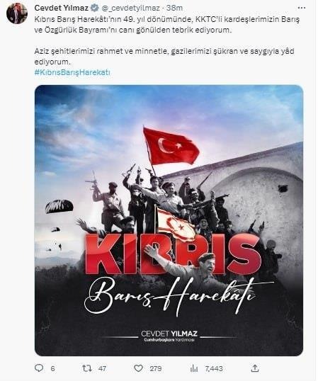 Daha önce Piyangolar İdaresi’nin kullandığı görseli, bu kez Türkiye’nin Kıbrıs İşlerinden Sorumlu Cumhurbaşkanı Yardımcısı Cevdet Yılmaz kullandı.